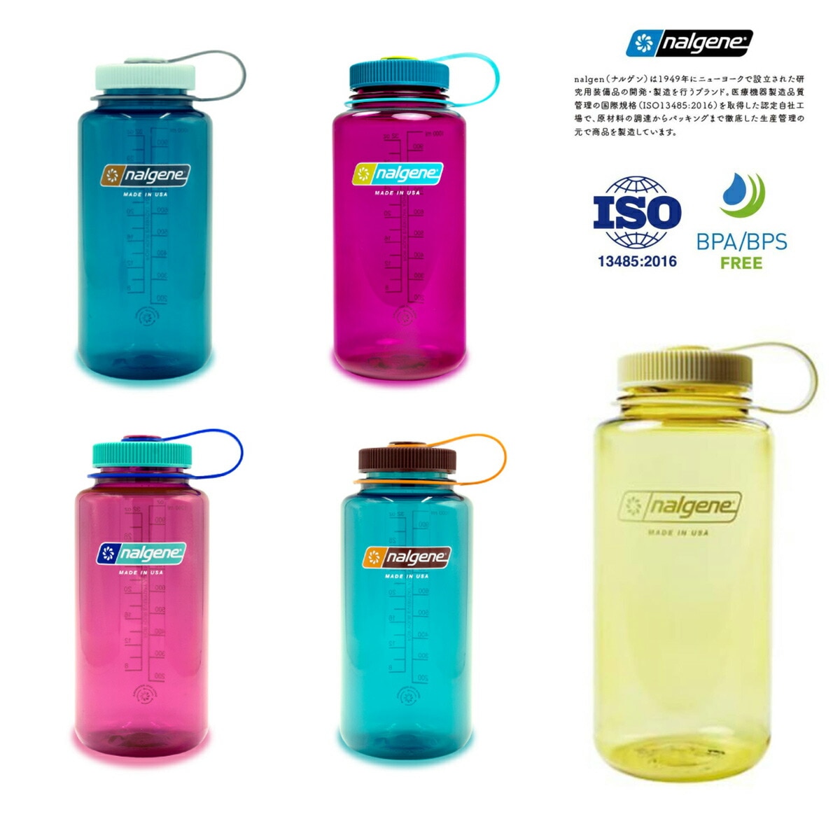 水筒 NALGENE ナルゲン 広口 1.0L ティール TRITAN RENEW プラスチックボトル 軽量 トライタンリニュー アウトドア ハイキング お花見